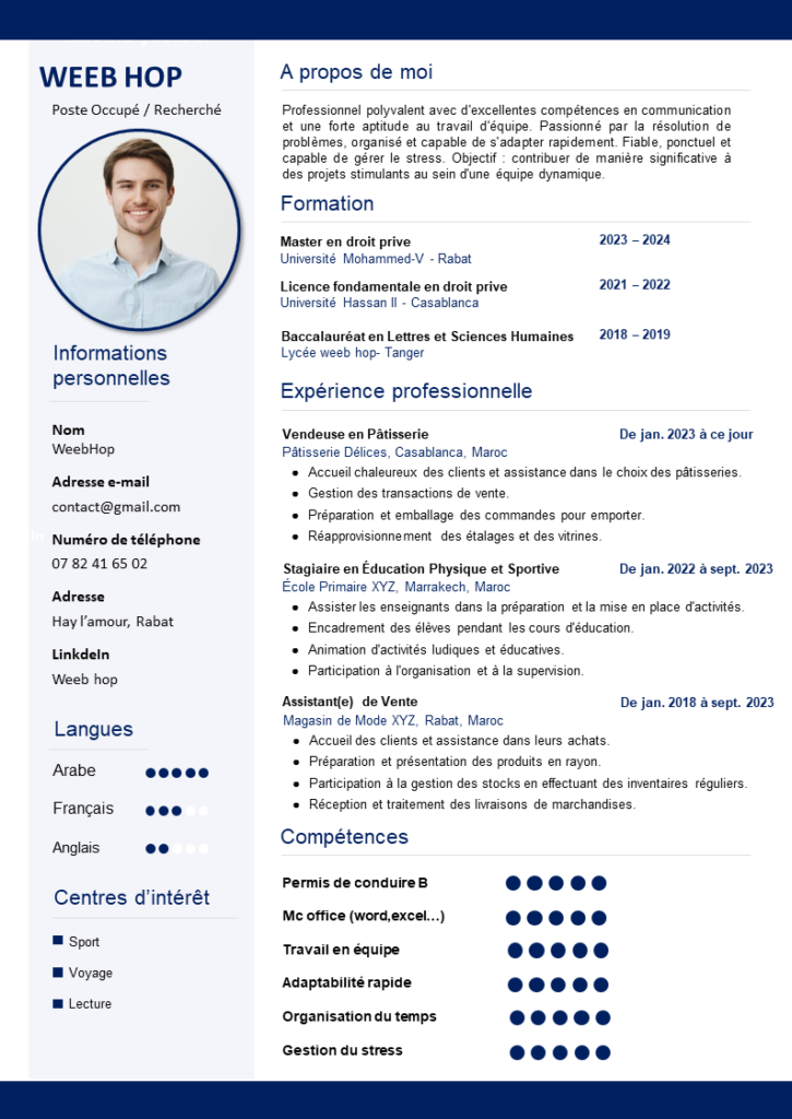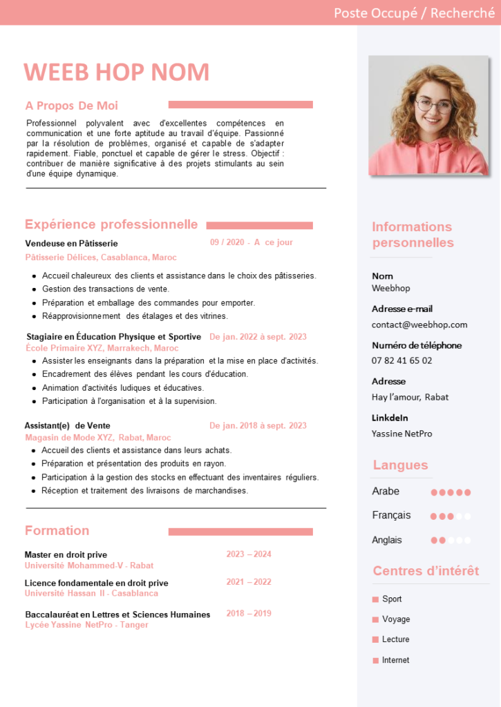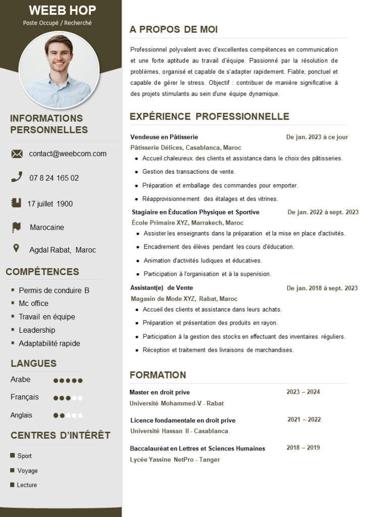 Bienvenue chez WeebHOP…. Search Téléchargez des Modèles PowerPoint de CV Gratuits et Professionnels CV Moderne Professionnel Télécharger CV Professionnelle Épuré et Créatif Télécharger CV Professionnelle Élégant et Structuré Télécharger Meilleurs Modèles de CV en Arabe Télécharger